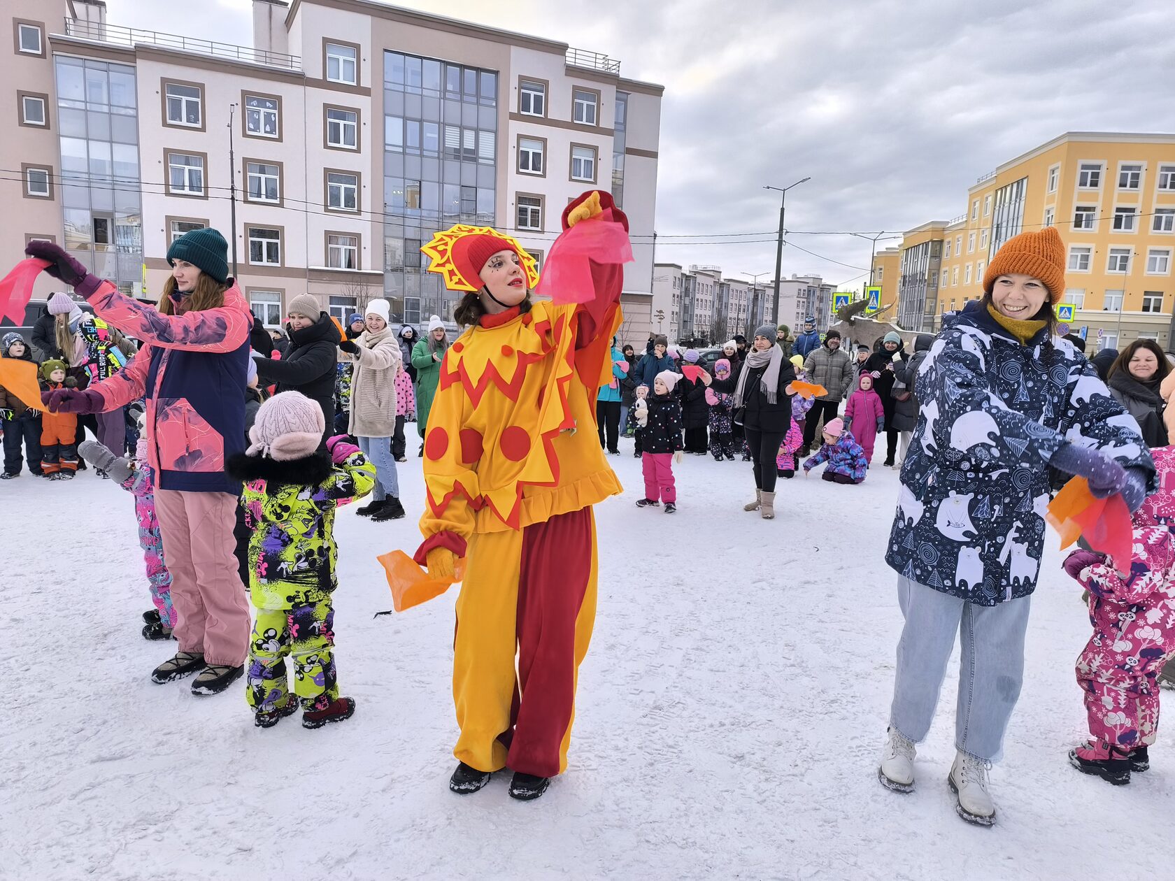 Веселые масленичные гулянья с играми и танцами прошли для жителей сразу нескольких крупных комплексов: «Ясно.Янино», «Новое Сертолово», «ЮгТаун», «Любоград» и Veren Village.